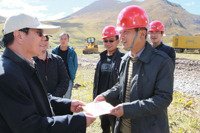 9月18~22日期間,唐增科董事長(zhǎng)在集團(tuán)公司辦公室、計(jì)劃投資部人員及玉樹(shù)、玉能兩公司負(fù)責(zé)同志陪同下,分別前往拉貢水電廠、稱多縣8MW “金太陽(yáng)”發(fā)電站、稱多縣供電所、查隆通水電廠、查日扣水電站和當(dāng)卡水電站施工現(xiàn)場(chǎng)、2MW “金太陽(yáng)”水光互補(bǔ)微網(wǎng)發(fā)電站、禪古水電廠以及玉樹(shù)州燃油發(fā)電機(jī)廠,全面調(diào)查了解項(xiàng)目建設(shè)、電站運(yùn)行、安全管理及黨的建設(shè)等情況。在各發(fā)電廠,唐董事長(zhǎng)走上大壩,進(jìn)入廠房,駐足察看機(jī)組運(yùn)行實(shí)時(shí)狀況,與運(yùn)行人員交流,向現(xiàn)場(chǎng)值班人員詢問(wèn)用電負(fù)荷、機(jī)組出力及設(shè)備維護(hù)等情況。在各在建項(xiàng)目施工現(xiàn)場(chǎng),唐董事長(zhǎng)仔細(xì)了解項(xiàng)目前期工作、投資計(jì)劃和工期安排,并和施工單位管理人員現(xiàn)場(chǎng)交流項(xiàng)目施工計(jì)劃和人員、設(shè)備配置等情況,他要求參建單位抓緊抓實(shí)各項(xiàng)工作,科學(xué)謀劃、合理安排、精心組織,力爭(zhēng)完成年內(nèi)施工任務(wù)。在稱多供電所,唐董事長(zhǎng)和職工座談交流,詳細(xì)了解電力供應(yīng)、職工收入和工作生活等情況。每到一處,唐董事長(zhǎng)向兩公司干部職工以及廣大建設(shè)者致以中秋、國(guó)慶佳節(jié)的問(wèn)候和祝福,并贈(zèng)送了慰問(wèn)金。他勉勵(lì)大家立足本職崗位努力工作,為玉樹(shù)災(zāi)后重建和建設(shè)新玉樹(shù)做出更新更大的貢獻(xiàn)。