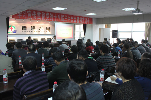 12月5日上午,青海水電集團(tuán)召開(kāi)學(xué)習(xí)宣傳貫徹黨的十八屆三中全會(huì)精神宣講會(huì)。省委講師團(tuán)團(tuán)長(zhǎng)郭云甫同志作宣講報(bào)告。集團(tuán)黨委書記、董事長(zhǎng)唐增科同志主持宣講會(huì),總經(jīng)理王海青和集團(tuán)班子其他成員李傳強(qiáng)、吳世周、徐強(qiáng)、李建民、姚鐵兵同志,各成員企業(yè)在寧的負(fù)責(zé)同志和黨群部門負(fù)責(zé)人、黨員代表,以及集團(tuán)本部機(jī)關(guān)干部職工共70余人聆聽(tīng)宣講。
