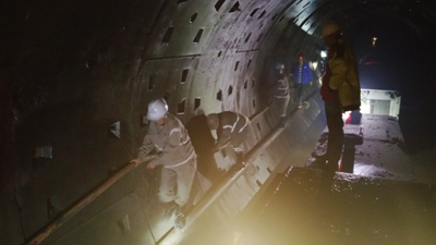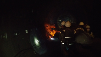 檢查組在察看調(diào)水總干渠出口段工區(qū)后,乘小型軌道車(chē)穿越引水隧洞全線,利用三個(gè)多小時(shí)時(shí)間,對(duì)施工掌子面現(xiàn)場(chǎng)的安全設(shè)施運(yùn)行狀態(tài),以及豆礫石回填灌漿、混凝土襯砌、鋼拱架安裝及缺陷處理等施工情況進(jìn)行細(xì)致檢查,了解隧洞出口段F4/F5斷層帶管片變形段施工處理情況,對(duì)各施工單位進(jìn)一步合理分工,加強(qiáng)協(xié)調(diào)配合,強(qiáng)化現(xiàn)場(chǎng)管理,狠抓安全質(zhì)量,加快推進(jìn)工程建設(shè)提出了具體要求。