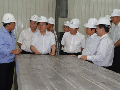 在青海聚能鈦業(yè)有限公司,強(qiáng)衛(wèi)書記一行首先登上EB爐,仔細(xì)察看設(shè)備運(yùn)行和鈦錠熔鑄過(guò)程,詢問(wèn)工藝流程、熔煉技術(shù)、勞動(dòng)防護(hù)、職工收入等情況。在原材料篩分區(qū),強(qiáng)書記察看了海綿鈦的篩分及其規(guī)格和形狀,了解了原材料供應(yīng)、產(chǎn)品銷路和價(jià)格等情況,并察看了純鈦扁錠切割和成品存放區(qū)。強(qiáng)衛(wèi)書記非常關(guān)心我省特種新材料產(chǎn)業(yè)的發(fā)展,在聽取了青海水電集團(tuán)董事長(zhǎng)、黨委書記唐增科,總經(jīng)理王海青、副總經(jīng)理吳世周關(guān)于青海聚能鈦業(yè)設(shè)備引進(jìn)、生產(chǎn)目標(biāo)、市場(chǎng)前景、后續(xù)投資計(jì)劃等的匯報(bào)后,強(qiáng)書記希望企業(yè)抓緊項(xiàng)目建設(shè),積極延伸產(chǎn)業(yè)鏈,加大規(guī)模、增強(qiáng)效益。